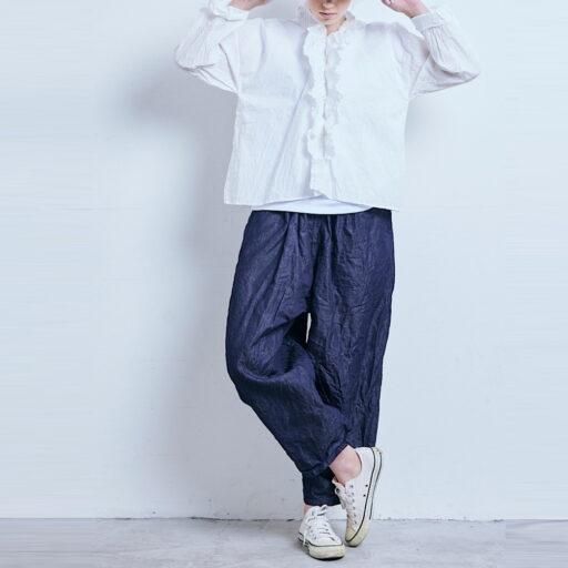 軽くてシャリ感のあるコットンリネンを使用。穿きこむほどに柔かくなります。