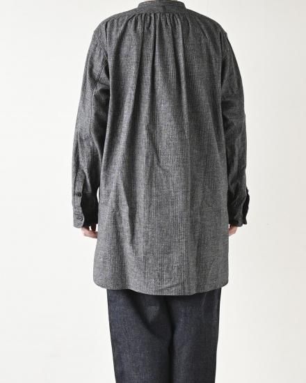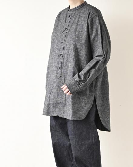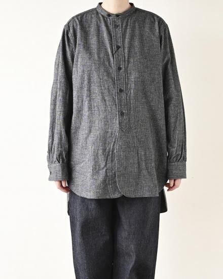 ワークシャツなのに肩のギャザー使いや襟元のデザインなど