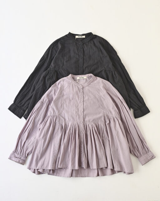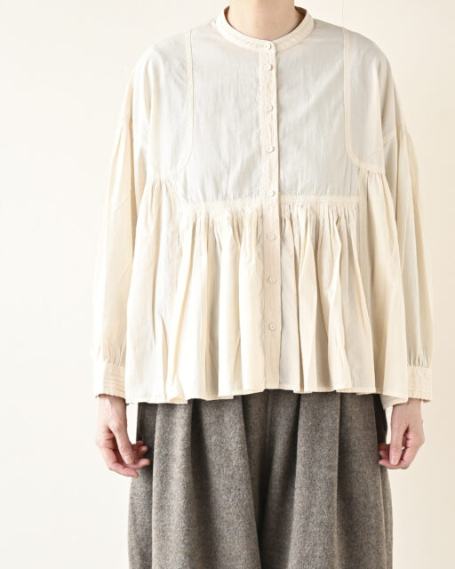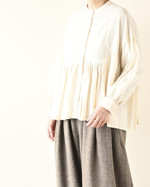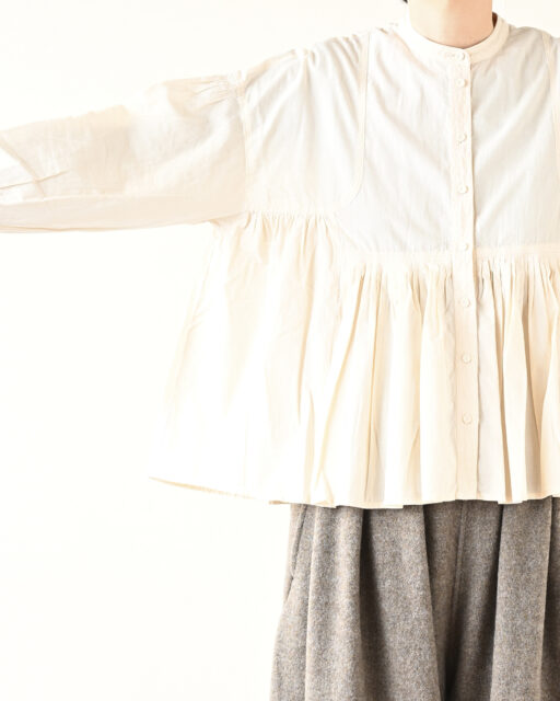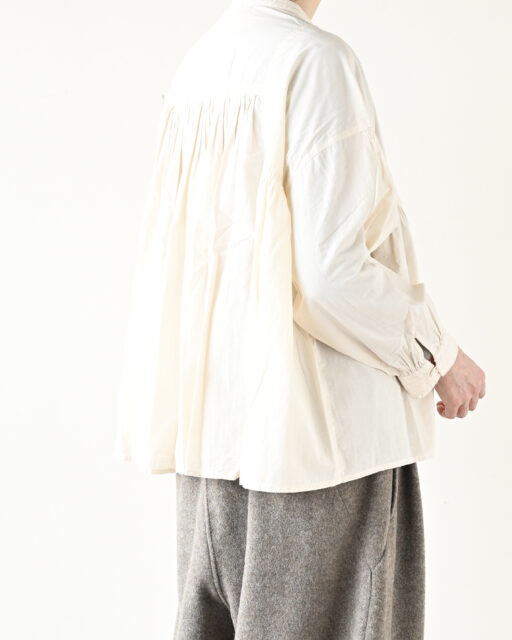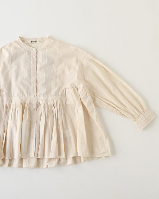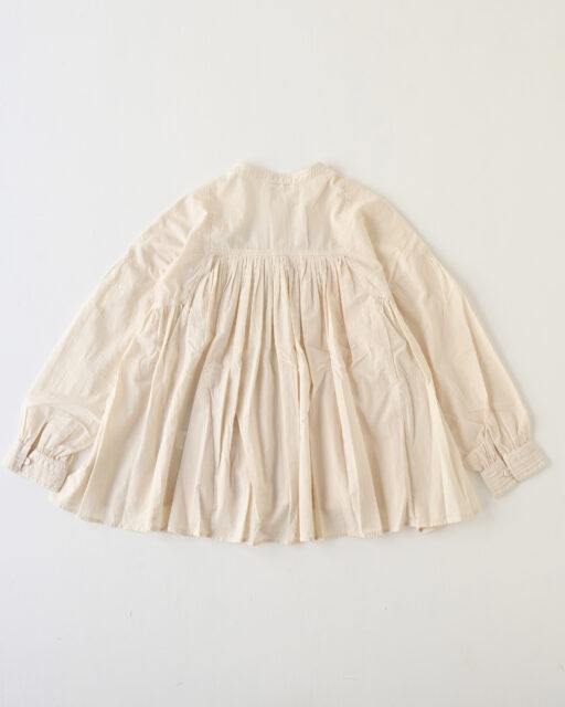 前後のヨーク部分に、たっぷりと細かくギャザーを施しました。