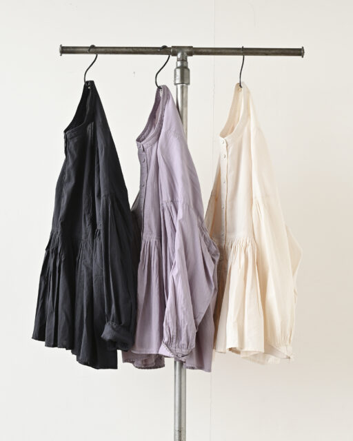 製品染めによる柔らかな風合いは、軽くて優しい着心地で、季節の変わり目に手放せなくなる一枚です。