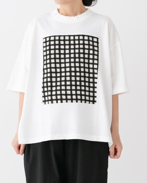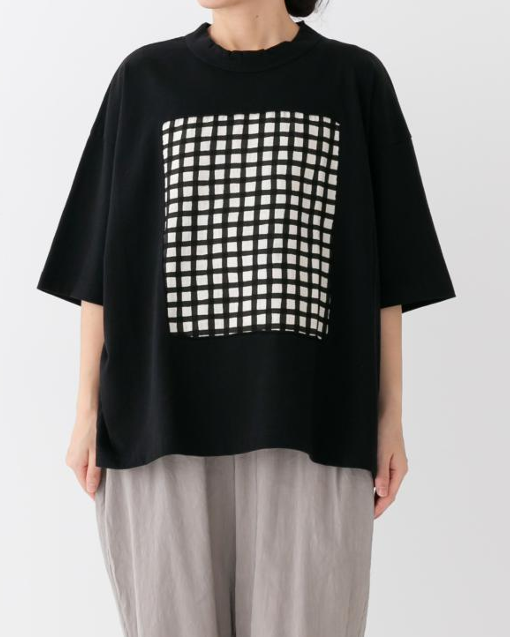 prit / プリット P91638 空紡天竺×ムラ糸プリント5分袖5/SフレームTシャツ(LADIES)